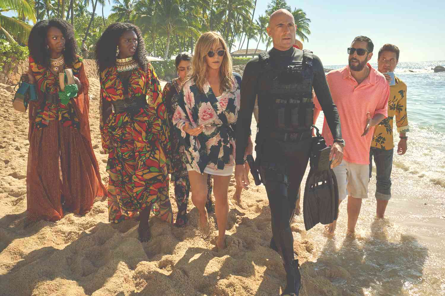 Adam Sandler and Jennifer Aniston are back as the Spitzes, the married NYC couple trying to make a go of it as private detectives. Out of the blue, they receive a last minute invitation to their buddy’s destination wedding. And what a wedding it is. The island destination is fabulous. The bride is fabulous. The goody bag is fabulous. Everything is fabulous. Until the groom gets kidnapped.